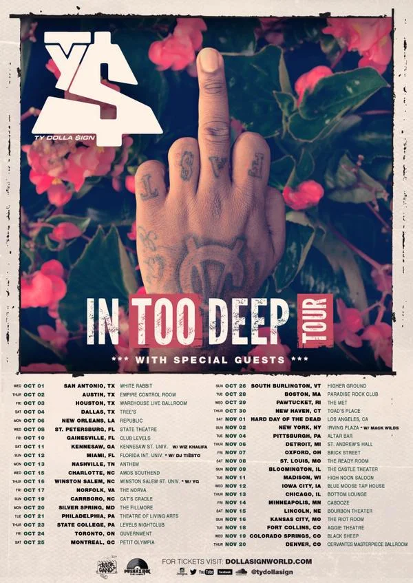 FEATURED: Ty Dolla $ign at Paradise Rock Club Tuesday, October 28, 2014 7:30 PM 11:00 PM 19:30 23:00 Google Calendar ICS Be sure to catch Ty Dolla $ign on tour this fall! Get your tickets here.See full tour dates in the photo below: View fullsize